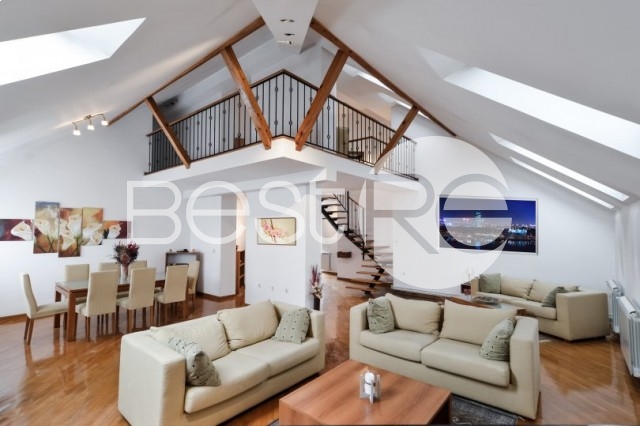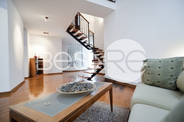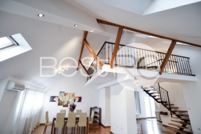 This charming 4 bedroom apartment is situated in the pre war building in Dorcol area, very attractive part. It is constructed as the annex to the building ( 155m2 is registered in cadaster). First level is organized as living room and dining area, separate spacious kitchen with the pantry, master bedroom with en suite bathroom (bath tab and shower) and wardrobe, toilet. Second level consists of the open gallery space, 3 bedrooms and 2 bathrooms, terrace. The entarnce of the building and hallway are well maintained, facade of the building is in good condition.