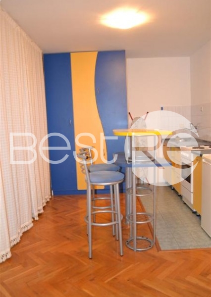 The building dated from 2000th. Extremely bright studio apartment without separated bed room. Has beautiful terrace with fantastic view. The building does not have elevator.