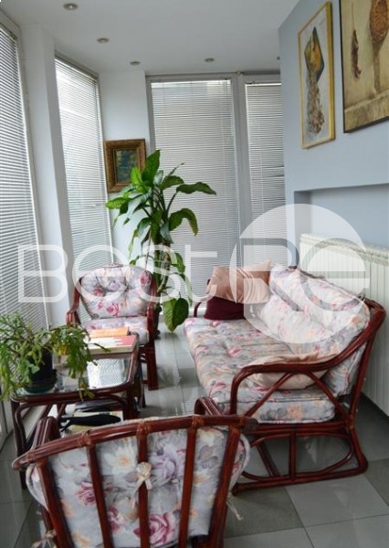 House in row with one more house, excellent quality of finishing works, spacious living room connected with indoor terrace and nicely maintained yard ( with barbegue), dining area with kitchen and storage space, sleeping area is organized on upper level, master bedroom with its own bathroom and closet space with direct access to the cca 40sqm of roof terrace, 2 bedroom, 2 bathrooms. Master bedroom is equipped with fire place, too.