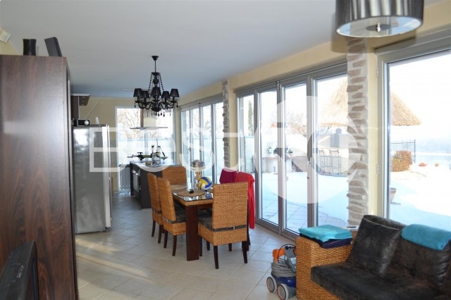 This unique position of the house on the right bank of the Danube with a beautiful view and complete privacy, at just 35km from the Belgrade's city center, is what makes it one of a kind. Registered, owned 1/1, building 6 years old, fenced, video surveillance and alarm, outdoor pool 5m x 10m overlooking the Danube, serviced and maintained and landscaped yard with sprinkler system and water thank, BBQ and pool bar, house 214m2 on two levels, modern building, auxiliary building / garage for 2 cars + plenty of parking spaces in the yard + garage space in the basement of the house. The ground level is a foyer with bathroom, two bedrooms, kitchen with "island", a living room which opens onto a terrace, all connected with the garden and swimming pool with a unique Danube river view. At basement there is bathroom and hobby room-garage, as well as storage. The house is sold with furniture and equipment.